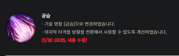 예전 액티브 5월 30일 방송을 보면 패치노트에는 원래 급습이 없었는데
