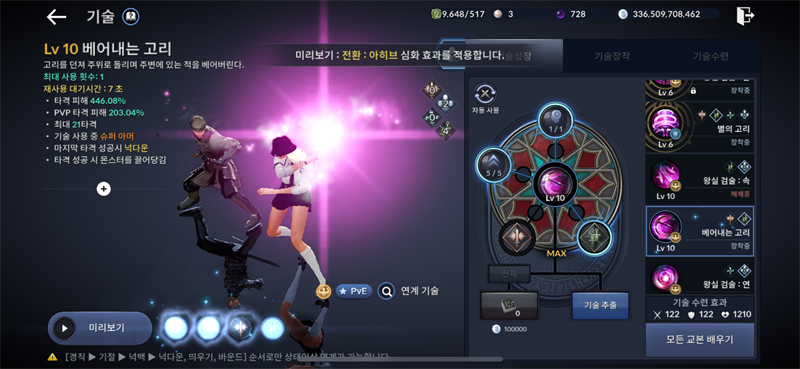 데미지는 기술수련장 기준 피해량증가 적용됩니다.