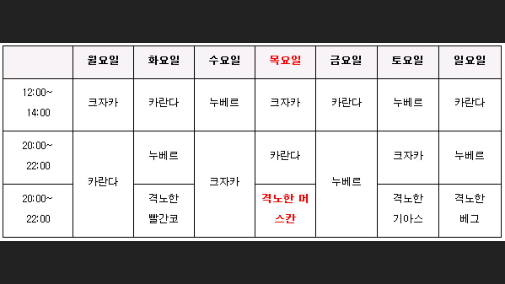 월보시간표