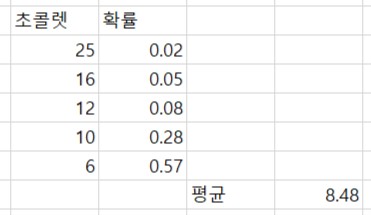 확률을 계산해보면 약 8.48개 8.5개이다.