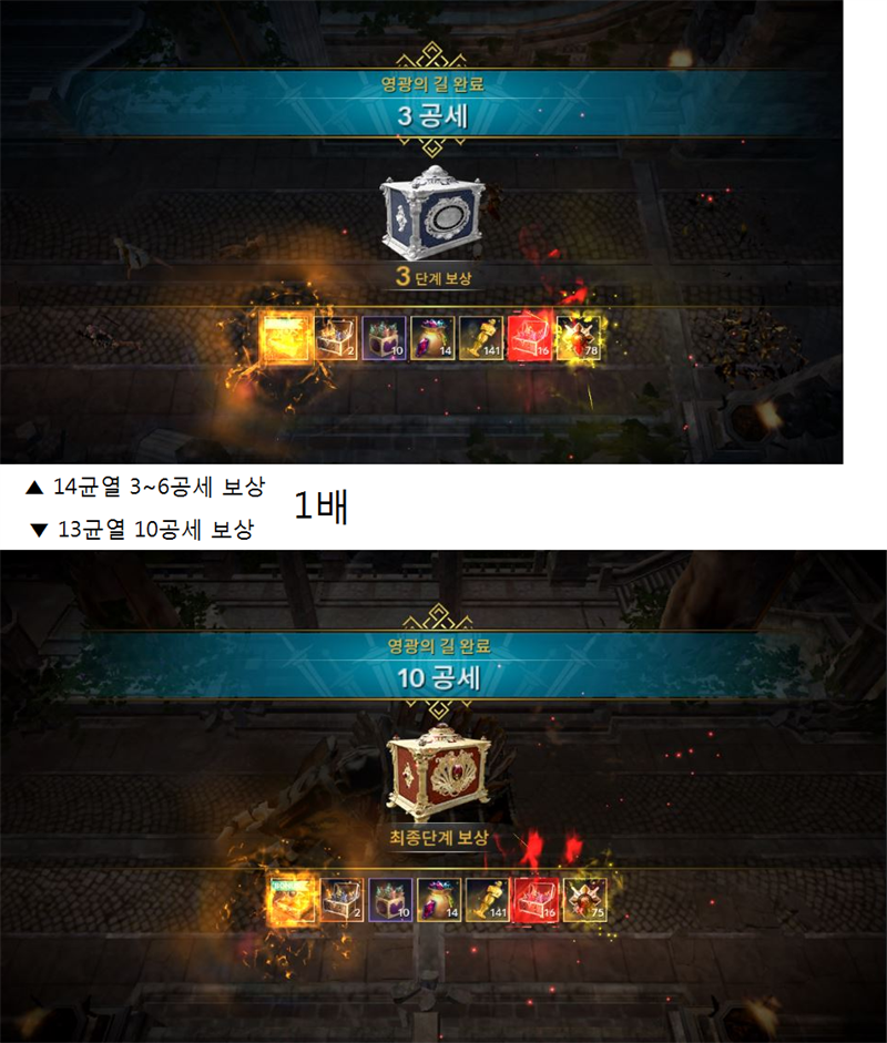 13균열 10공세로 1.5배 보상받아도 14균열 1배 보다 영광증표가 부족할 수도 있음.. 그래도 크게 차이는 안나보임.. 위에 12균열 13균열 차이처럼 4개정도로 봄..
