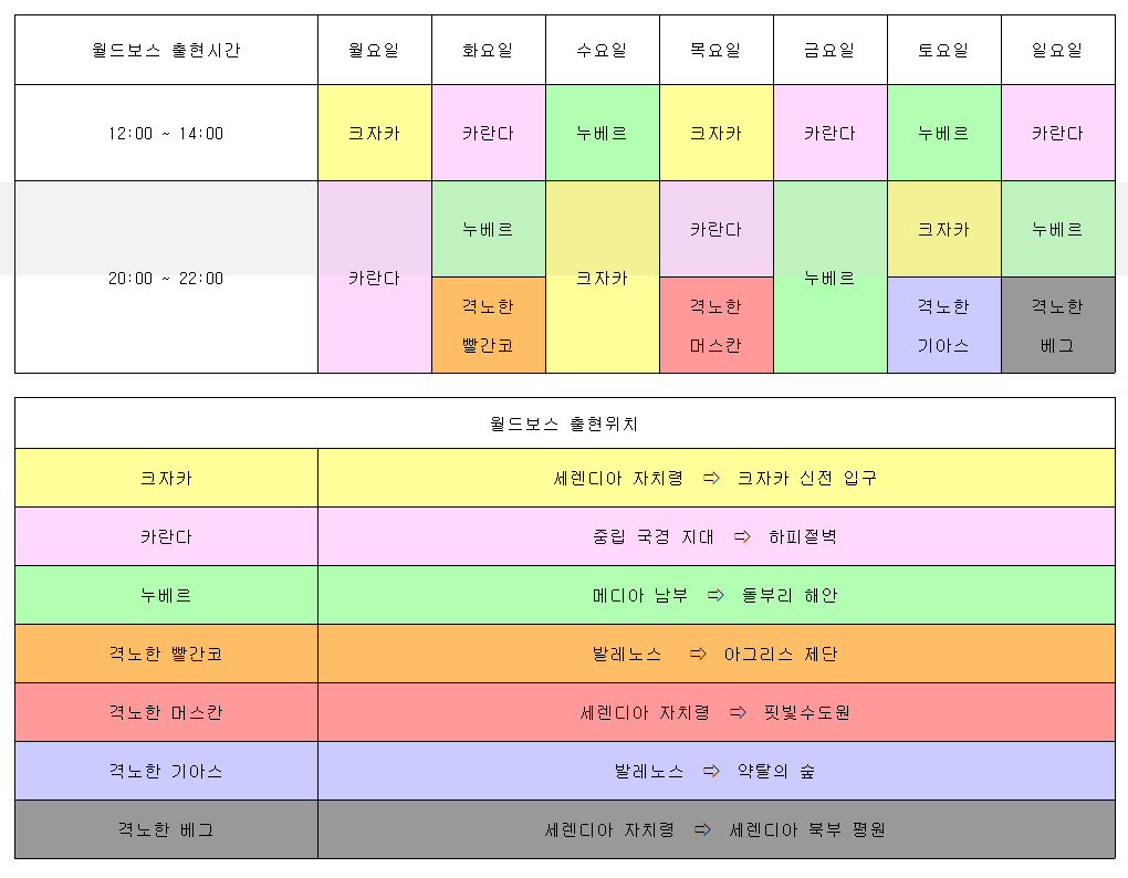 [하이델]★★★월드보스 시간 및 지역정리★★★