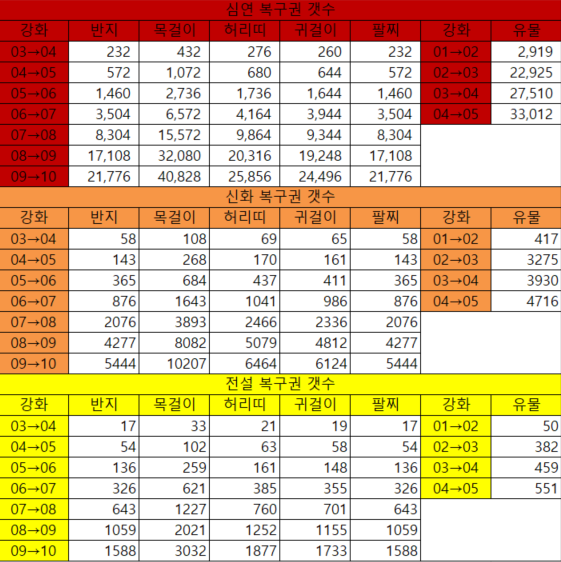 장신구&유물 돌파 복구권 수량