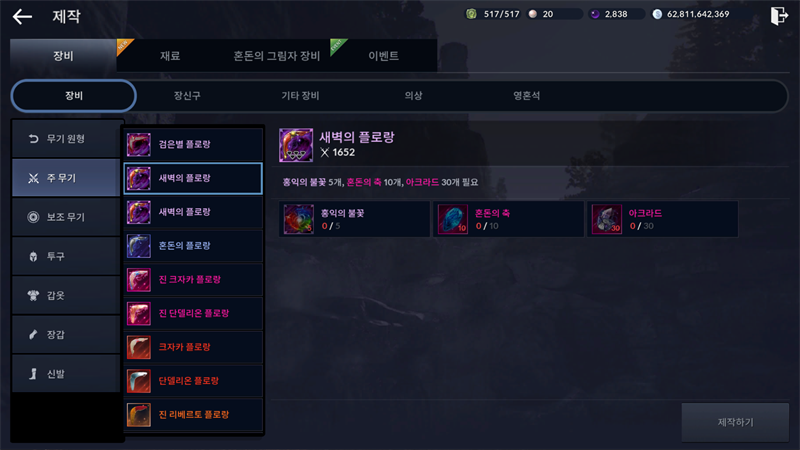 시즌을 졸업한 모험가님의 다음 목표는 바로 '새벽의 장비' 제작이 될 것입니다.