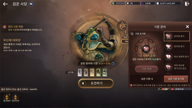 검은 사당에는 이곳에서만 적용되는 특별한 스펙업 시스템, '기운'이 있습니다.