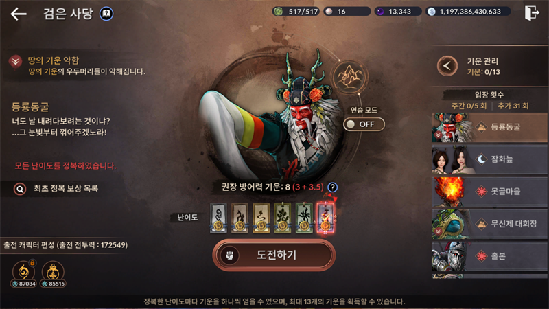 개인적으로 이놈 공략하는데 별의별 쌍욕한 우두머리로 기억나며, 죽엽장군 기준 6~7시니를 클리어한 경험이 있으시다면 별 문제 없이 클리어 가능한 우두머리입니다.