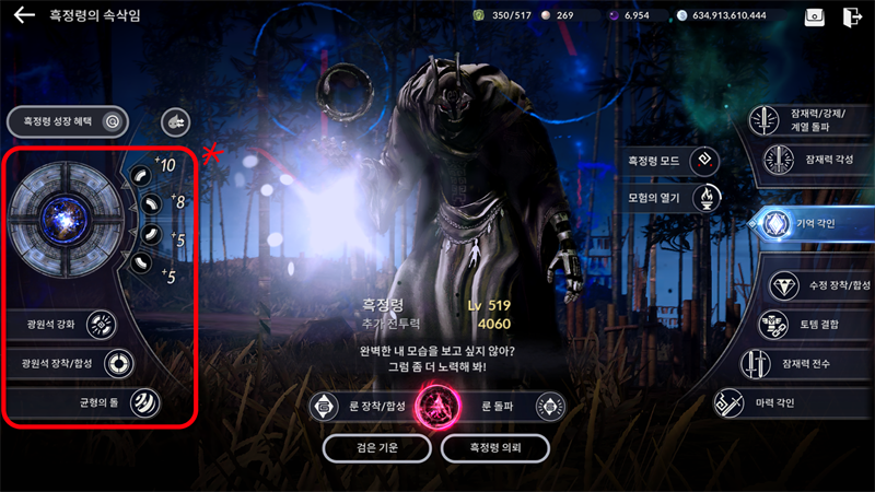 흑정령 메뉴 좌측에 광원석 메뉴들이 있는데요.