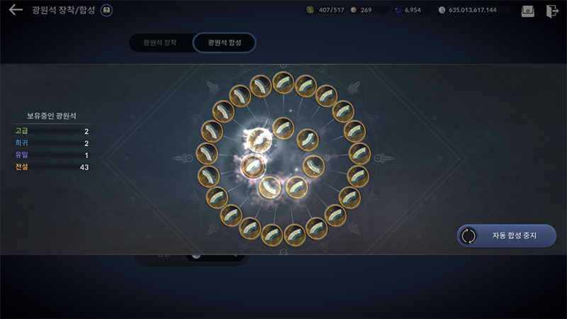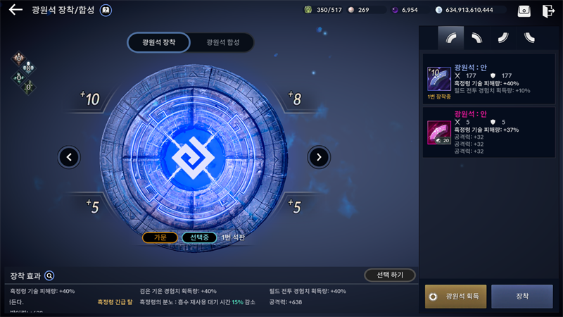 그리고 화면 하단에 보면 광원석 장착 효과를 통합해놓는 것을 확인할 수가 있을겁니다.