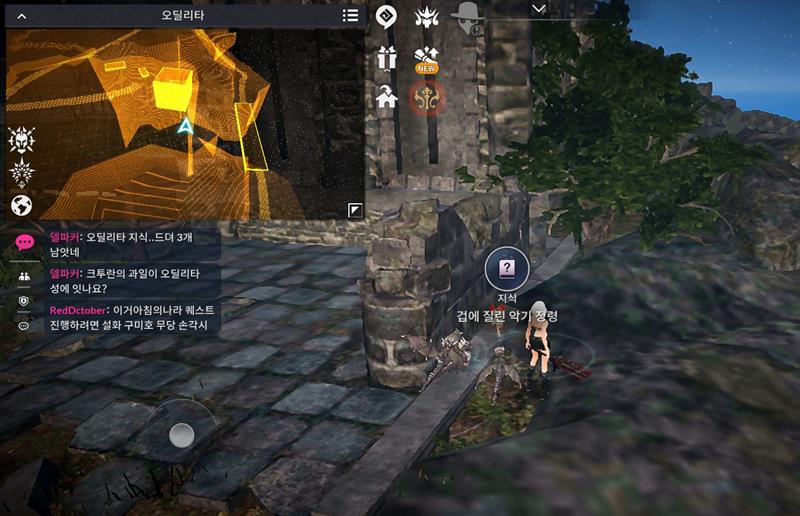 지식 - 모험 - 겁에 질린 악기 정령 -> 발모양 아이콘 클릭, 이동