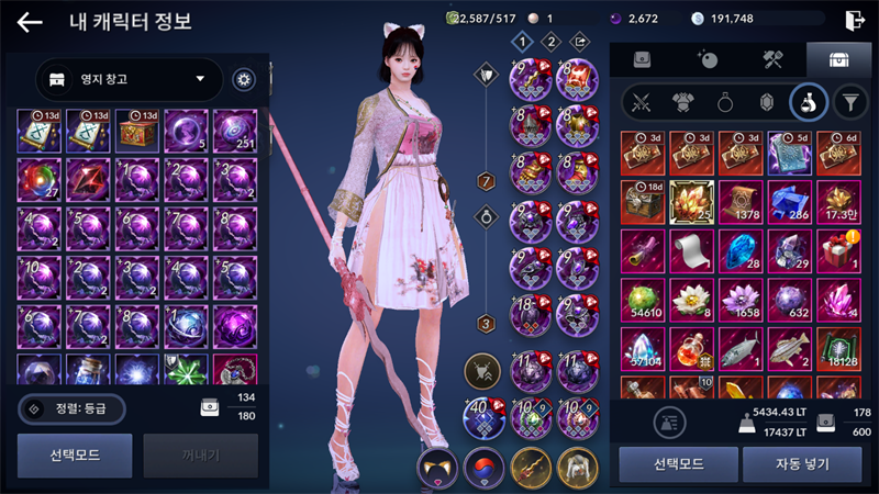왼쪽의 제 창고를 보시면 영혼석의 잔재들이 각 단계별로 일정 수량씩 가지고 있는 것을 보실 수 있을 텐데요.