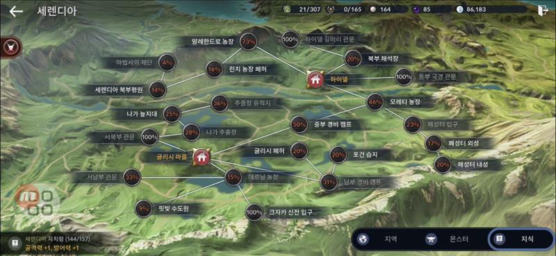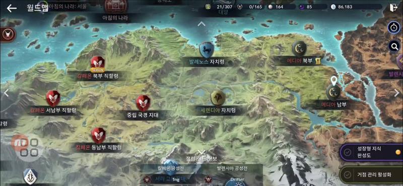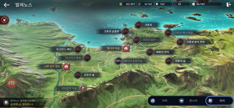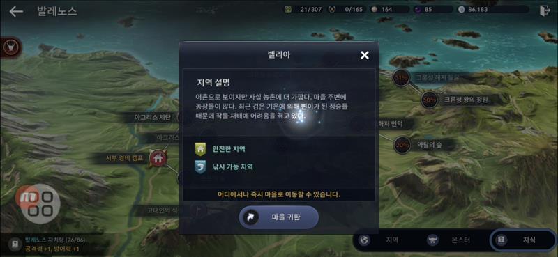 이제 월드맵내부 벨리아마을이 있는 벨레노스자치령 일명 도시 지역구를 터치합니다