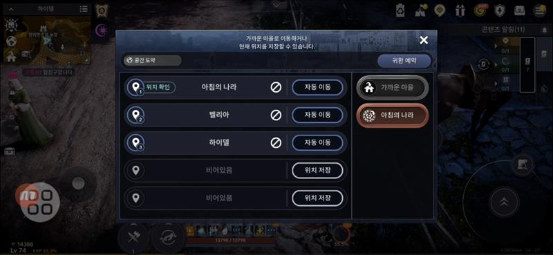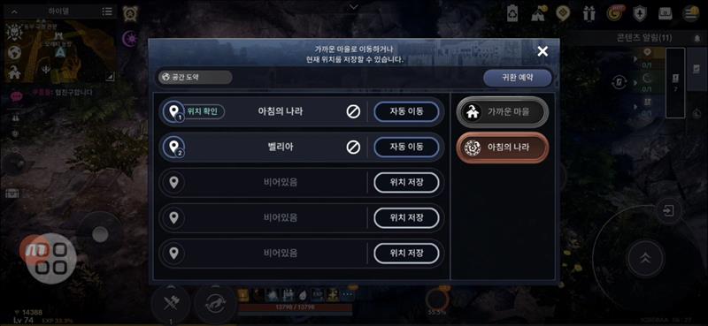 마을 바로가기 즐겨찾기 기능 공략 팁 검사모 쿠툼서버 십옥석 길드