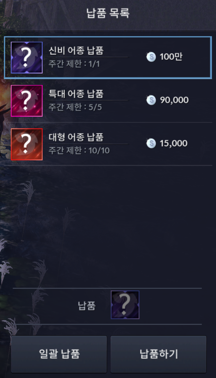 (낚시터에서 낚을수 있는 물고기 목록 관련 링크 : https://forum.blackdesertm.com/Board/Detail?boardNo=17&contentNo=12023)