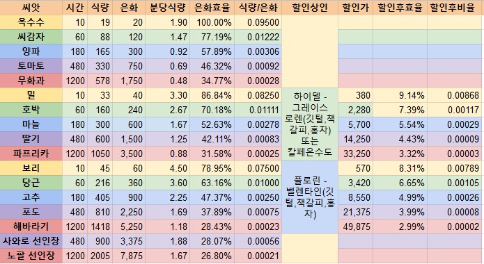 [발레노스] 씨앗 효율 할인상인 자료