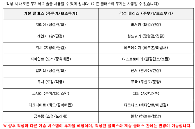 제목 : 기본클래스, 각성 클래스 무기/보조무기