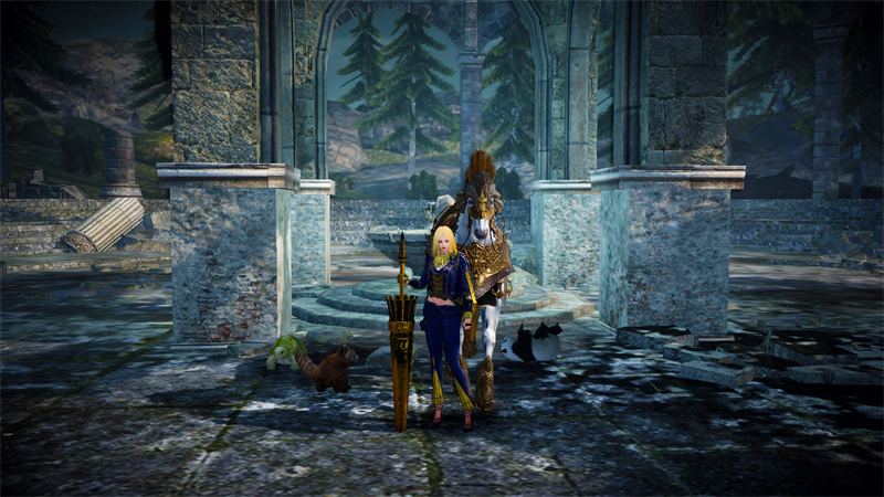 고풍스런 단테 의상에 파란색과 노란색으로 멋을 더하였습니다. 덤으로 단테 무기와 마갑 라르아시헨은 화룡점정이지요오오