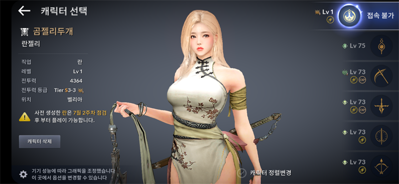 케릭명은 란젤리 (흐뭇)