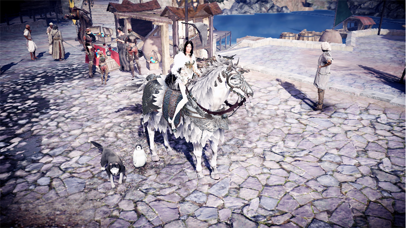 카바로를 입은 헌터가 카바로를 입은 백마에 탄 사진