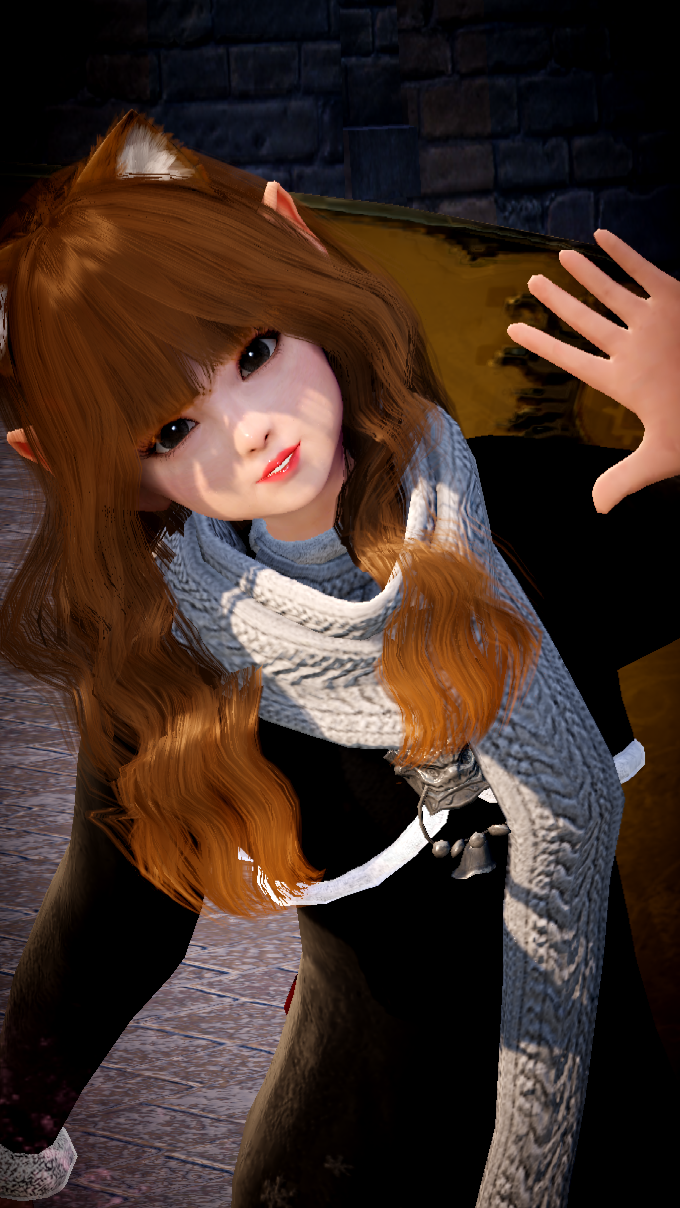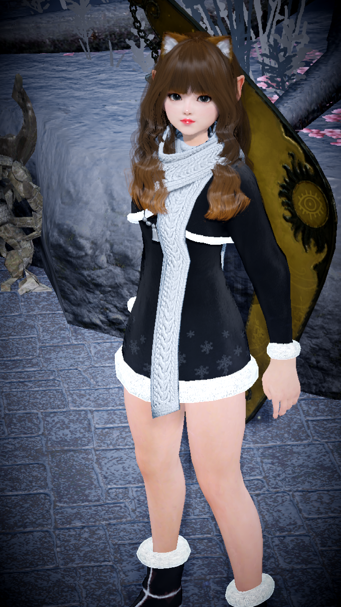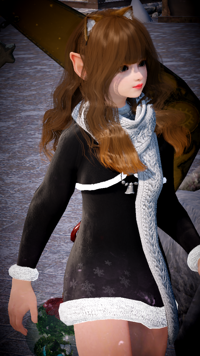 브라운빛나는 긴헤어와 블랙의 노엘의상이