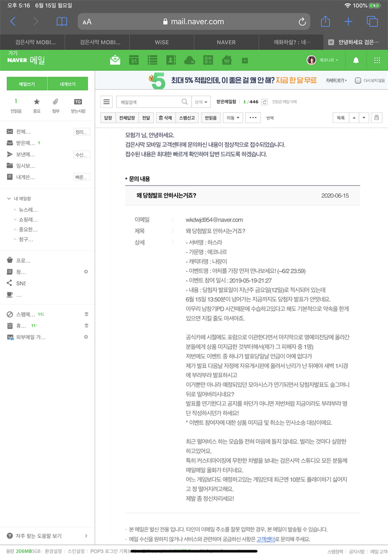 애초에 내수차별 꼰지른 이후로 당첨하나 된 적이 없는 나르다요...