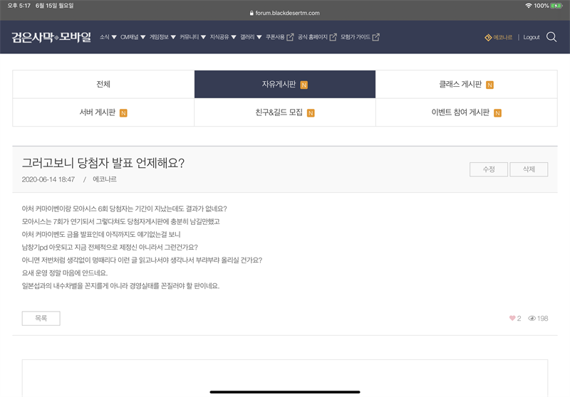 하도 당첨결과 안올려서 그거 꼰질렀더니니 이번에도 당첨 안됬다요...