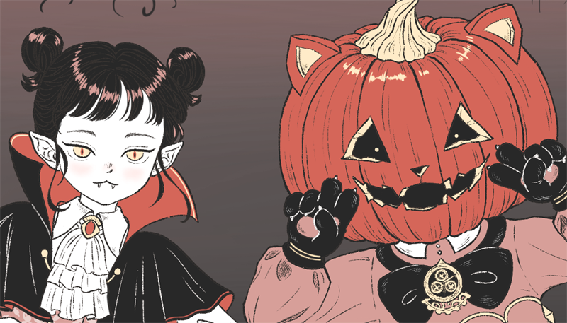 남캐 의상인 블러디슈트 뺏어입은 샤이, 호박대가리+원더랜드 의상 입은 샤이
