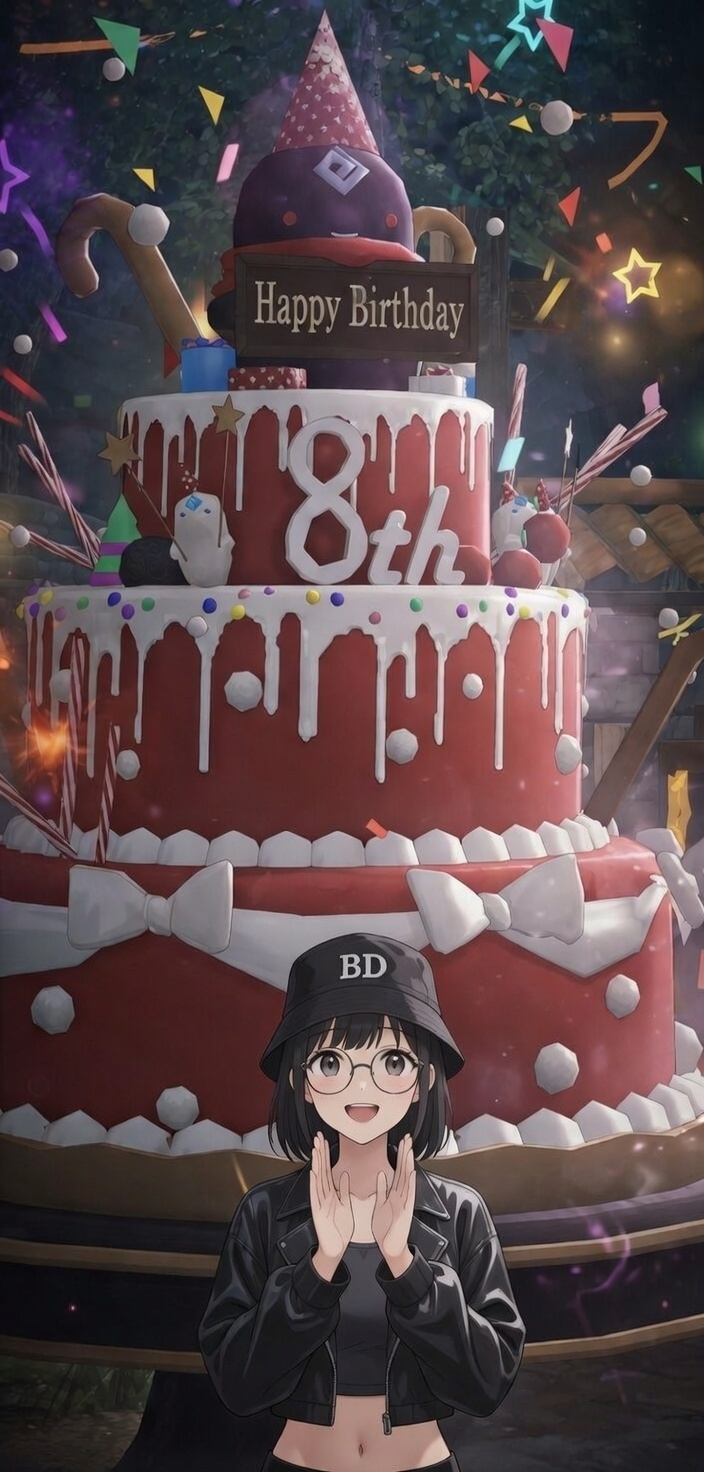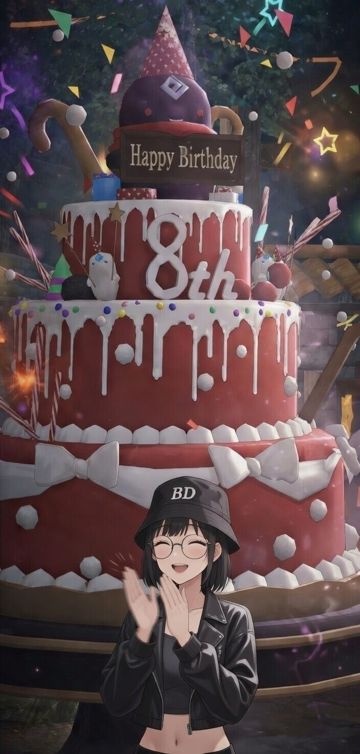 Grok 로 생성한 8주년 기념 일본 애니메이션풍 일러스트 팬아트 (with. 아크매지션, 블랙라벨)