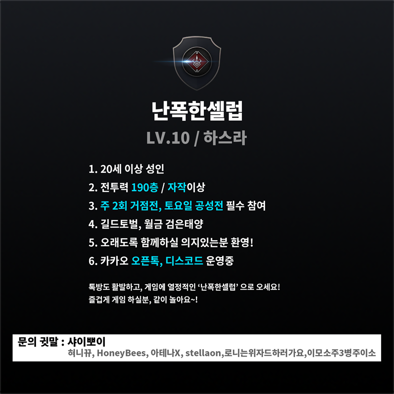 귓말은 샤이뽀이, 혀니뀨, HoneyBees, 아테나X, stellaon, 로니는위자드하러가요, 이모소주3병주이소 로 해주세요!