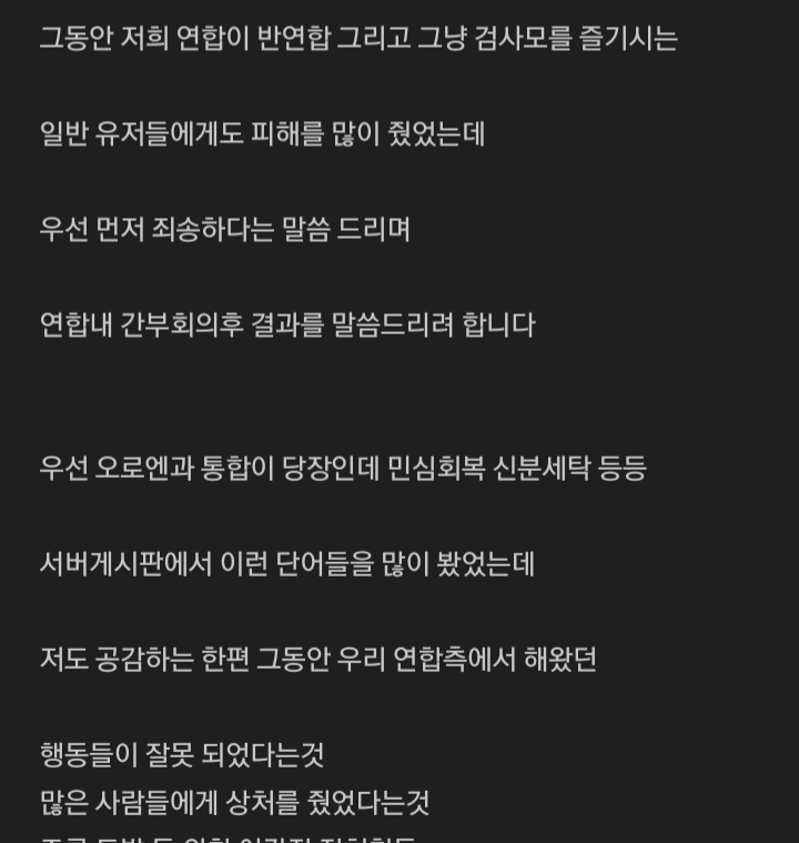 일레 연합 분들이 그 글을 본후에 반연합이라고 착각하시며 저에게