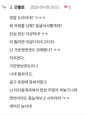 개거품 물며 닉네임 바꾼 "갓별로" 에 대해서 써볼려고 한다.