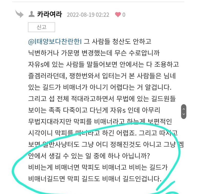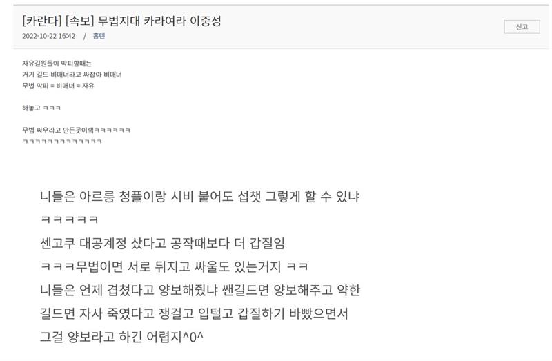 [카란다] 속보) 카란다 이중성길드 새벽, 적대인 자유랑 비교하면서 같은 편 안들어줬다고 이중성 거론하며 징징