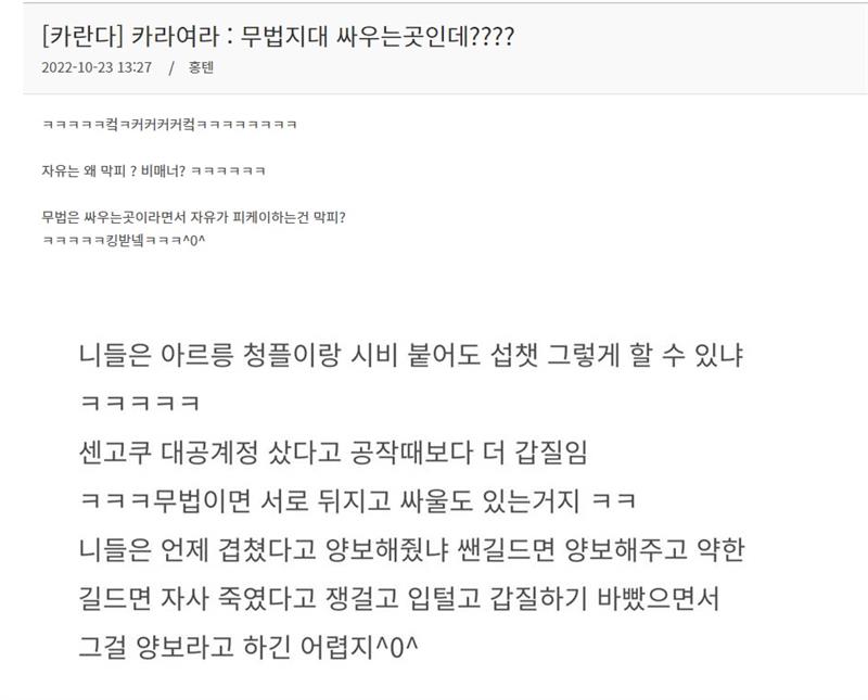 자유가 매너 거론하면서 징징 거리길래 조건문 달아서 니들도 비매너다 라고 깐글을 머선 ㅋㅋㅋㅋㅋㅋㅋㅋㅋㅋㅋㅋㅋㅋㅋㅋㅋㅋ