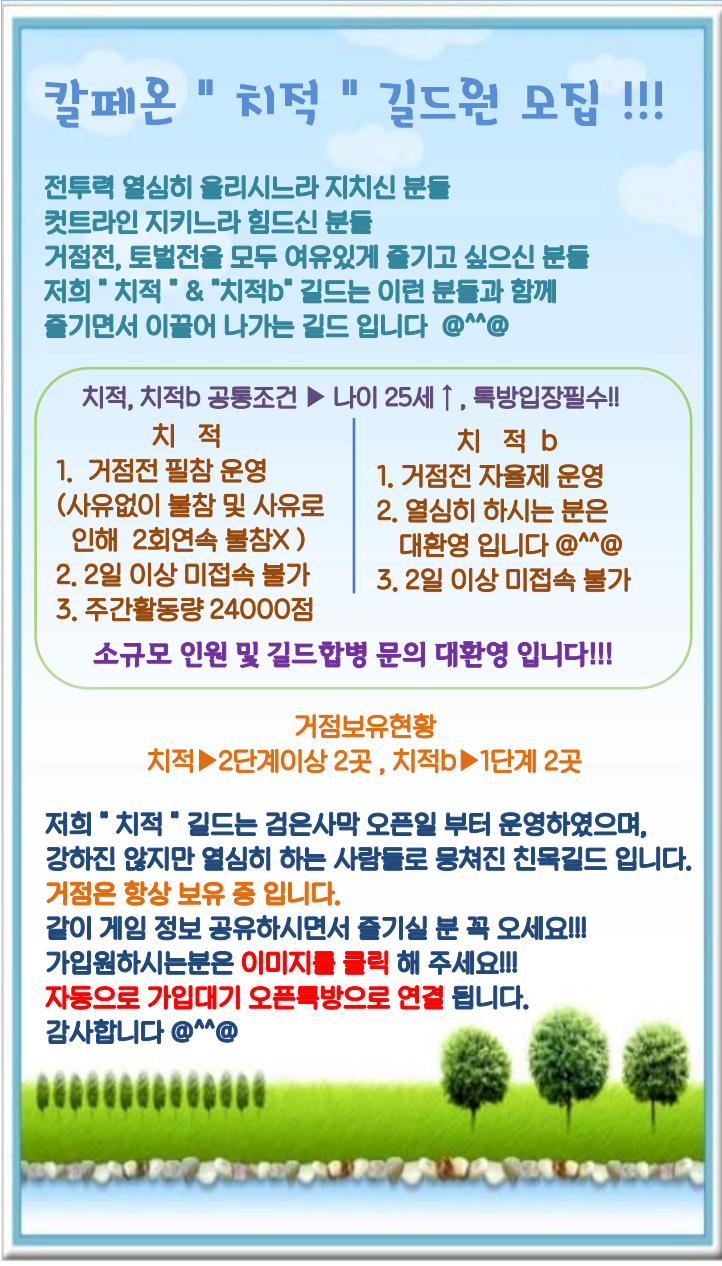 [하스라-칼페온] [칼페온] Lv9. ▶▶ 치적 ◀◀ 길드에서 편안하게 게임하실분 모집합니다~