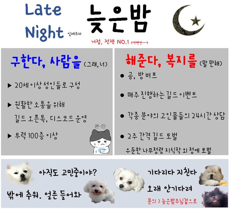 [일레즈라] 일레즈라- '늦은밤' 길드원모집합니다