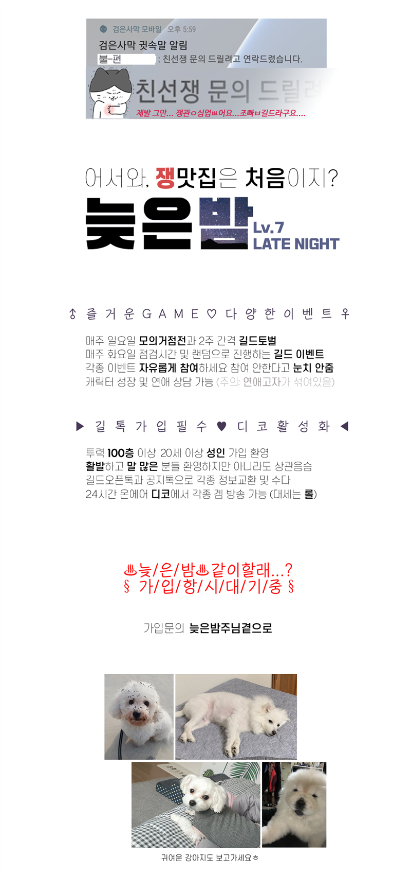 [일레즈라] 일레즈라- '늦은밤' 길드원모집합니다