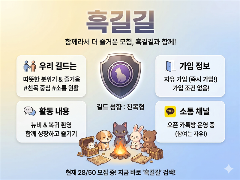 [쿠툼] 쿠툼서버 [흑길길] 길드원 모집합니다!