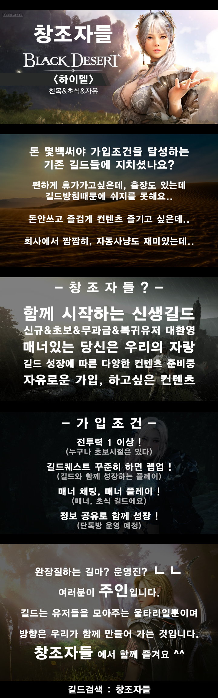 [하스라-하이델] 창조자들 길드에서 길드원들을 모십니다~