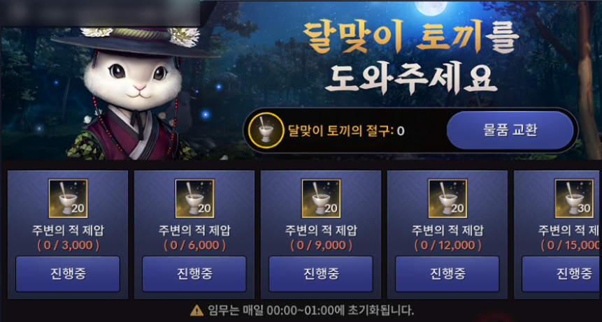 매일 임무로 토끼를 도와주면, 달맞이 토끼의 절구를 획득할 수 있습니다.