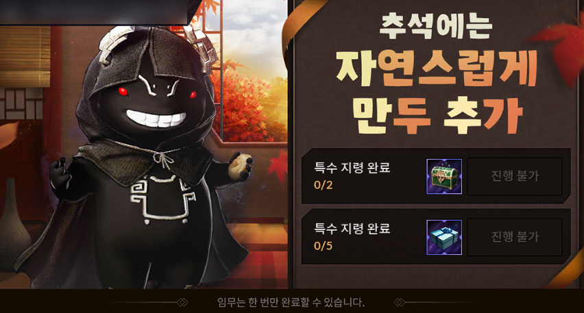 추석 덕담 3회를 완료하고 검은 사당 입장권을 획득해 보세요!