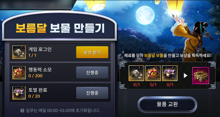 보름달 보물은 매일 임무를 통해 획득할 수 있습니다.