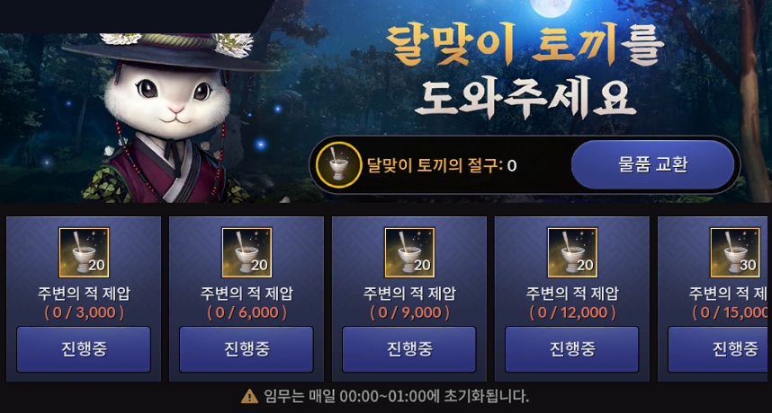 - '달맞이 토끼의 절구'를 모아 원하는 보상으로 교환할 수 있습니다.