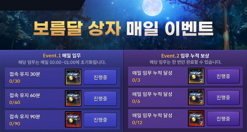 - 누적으로 임무를 달성하면 추가 보름달 상자를 획득할 수 있습니다.