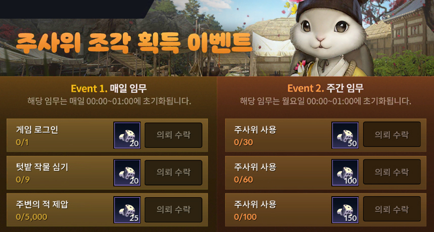 매일 임무와 누적 임무 보상으로 ‘주사위 조각’을 획득해 보세요!