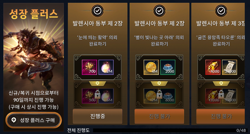 - '성장 플러스' 구매 시 더욱 강력한 보상을 획득할 수 있습니다. (가격 : 55,000원)