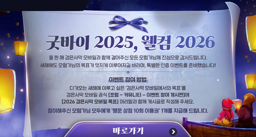 굿바이 2025, 웰컴 2026 (~1/6 09:00) 2025-12-29 10:00 검은사막 모바일