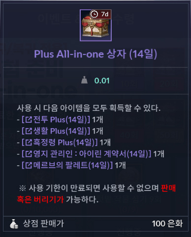 - 이벤트 아이템의 이동 및 복구는 불가능합니다.