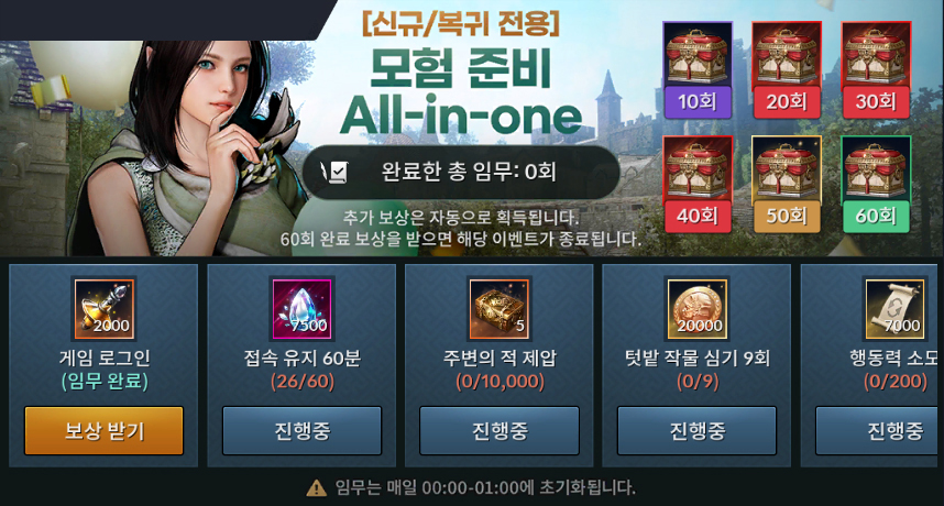 (해당 임무는 매일 00:00~01:00에 초기화됩니다.)