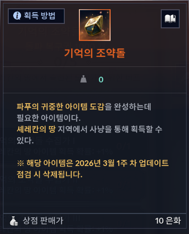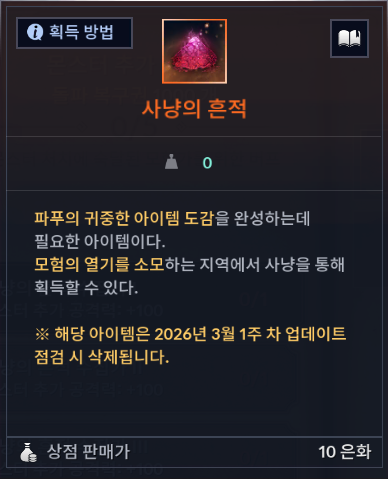- 도감 아이템 거래 및 달성 효과 지속 기간 : 1월 6일(화) 점검 후 ~ 3월 3일(화) 점검 전