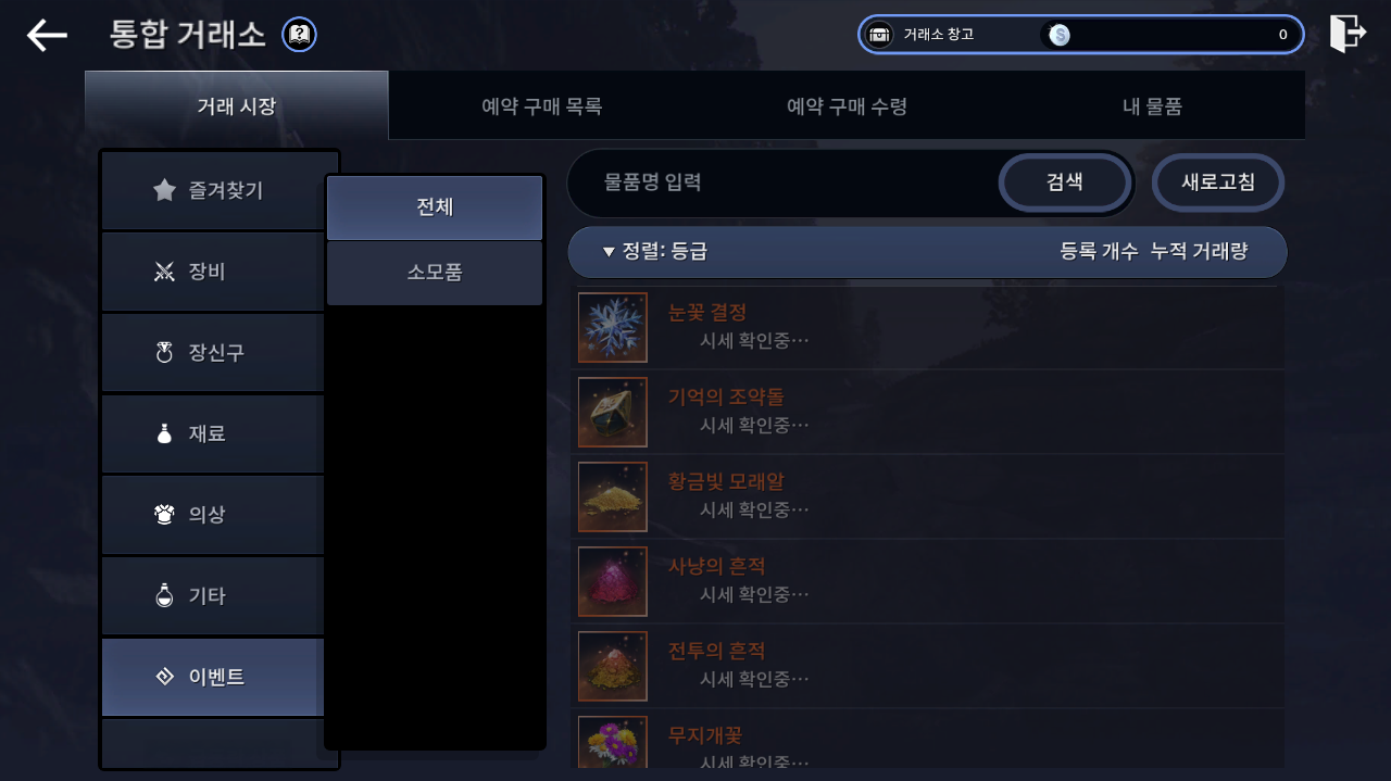 - '금빛 조개'를 제외한 도감 재료는 통합 거래소를 통해 거래할 수 있습니다.