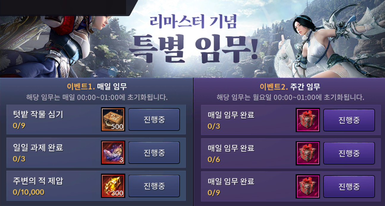 검은사막 모바일 리마스터를 기념하여 특별 임무가 진행됩니다!